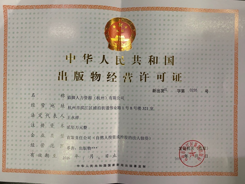 人力資源服務許可證 330108000033號 增值電信經營許可證 出版物經營許可證 新出發濱字第0235號